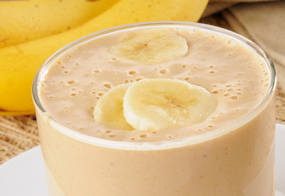 Thin with a little more milk or water if too thick. Pour into a glass and serve immediately with sliced bananas on top, if desired.