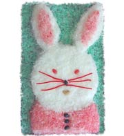 Sprinkle bunny's head and ears with white coconut. Press additional coconut onto sides of cake.
