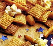 Heat oven to 350 F. Mix cereals, popcorn, pretzels and peanuts in large bowl; set aside. Heat brown sugar, corn syrup and margarine to boiling in 1-quart saucepan over medium heat, stirring occasionally. Remove from heat; stir in vanilla. Pour over cereal mixture inbowl, stirring until evenly coated. Spread in large ungreased roasting pan. Bake 20 minutes, stirring after 10 minutes. Spread on waxed paper to cool Store in airtight container.