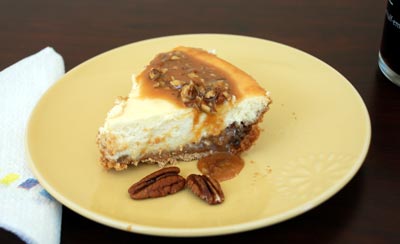 Mix cream cheese, sugar and vanilla with electric mixer on medium speed until well blended. Add beaten eggs and blend. Pour cream cheese batter over caramel mixture in crust.