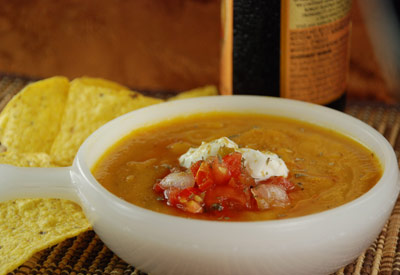 Garnish each serving with a spoonful of salsa, dollops of sour cream and a dusting of cumin.