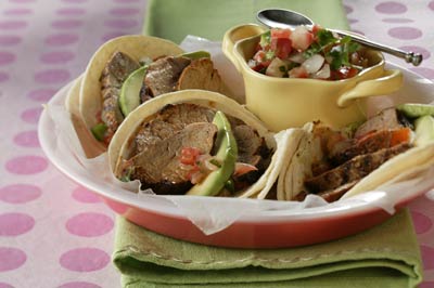 Let meat rest for 5 to 10 minutes. Slice tenderloin into 1/2- inch-thick slices and serve with warm corn tortillas, cilantro, salsa and sliced avocados.